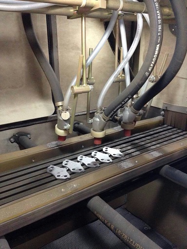 刹车片喷砂机工艺介绍 1、处理工件名称:刹车片 2、工件外形尺寸:适用任何刹车片 3、喷砂部位:刹车表面 4、喷砂目的:增加附着力 5、喷砂压力:5KG压力 6、喷砂磨料:钢砂 8、上下件方式:人工、机械手