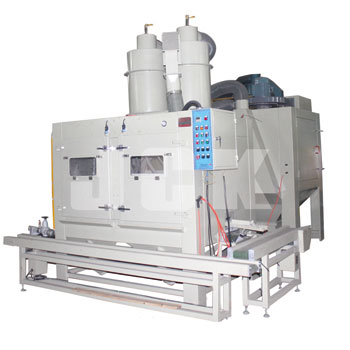 1、采用三角皮带输送工件,不会积砂,皮带速度配合喷砂工艺要求可实现变频调速;